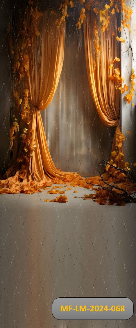 Orange Floral Curtain Backdrop